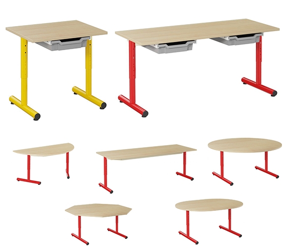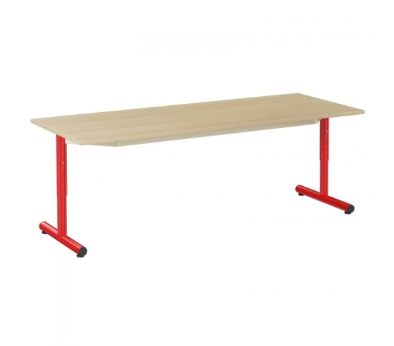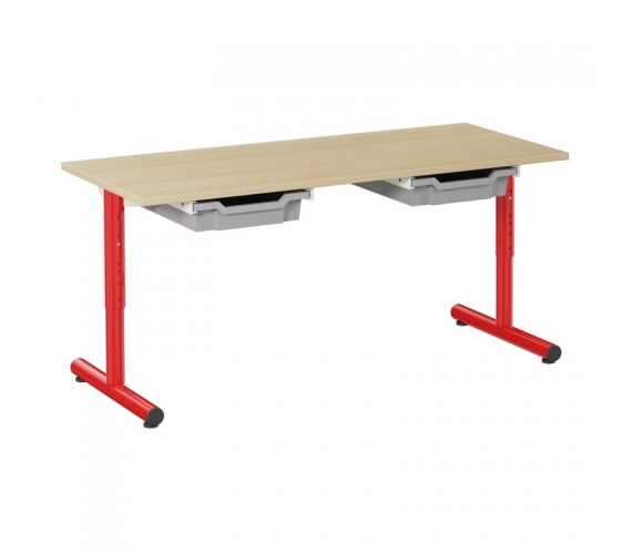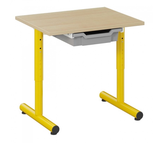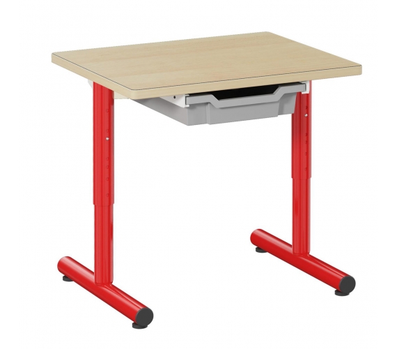 Table scolaire à dégagement latéral et réglable en hauteur.