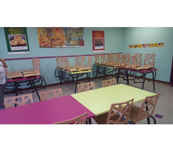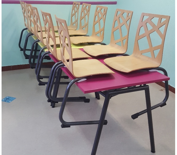 Hauteur d’assise : Tailles: 5, 6, norme européenne NF EN 1729. Piétement en aluminium permet d’améliorer les conditions de travail du personnel et de limiter les risques de TMS. Empilable.