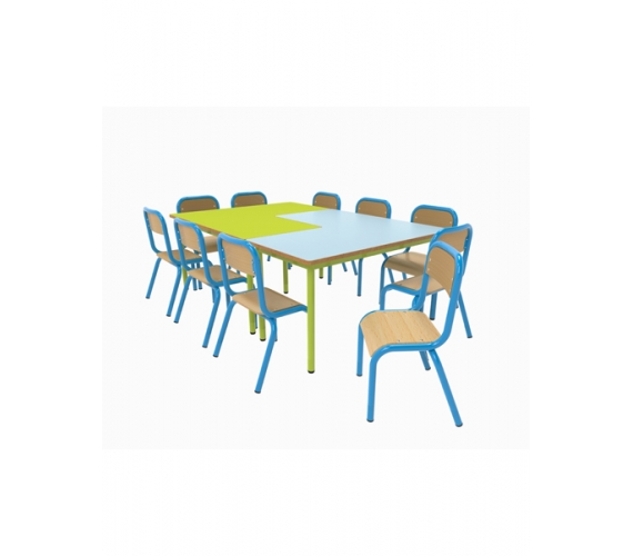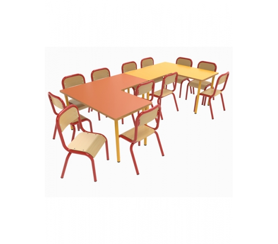 Piétement en tube 40×30 ép. 1,5 mm, traverses soudées en tube 40×30 ép. 1,5 mm.