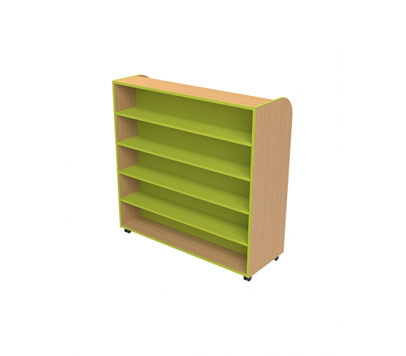 BIBLIOTHÈQUE BIFACE 1 FACE 4 TABLETTES - 1 FACE 3 TABLETTES INCLINEES - AVEC ROULETTES Ø 50
