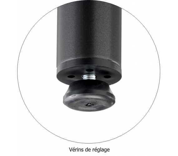 Vérins de réglage avec une course de 25 mm; non marquant et non tachant.