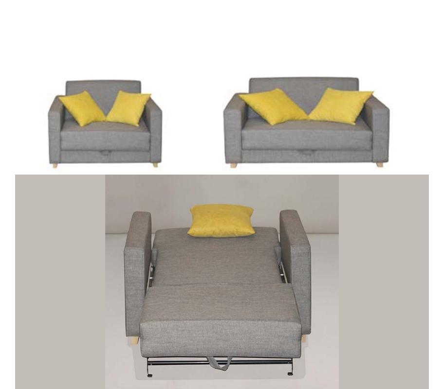 Structure intérieure en bois et métal. Le lit se déplie à partir du siège en un seul mouvement.