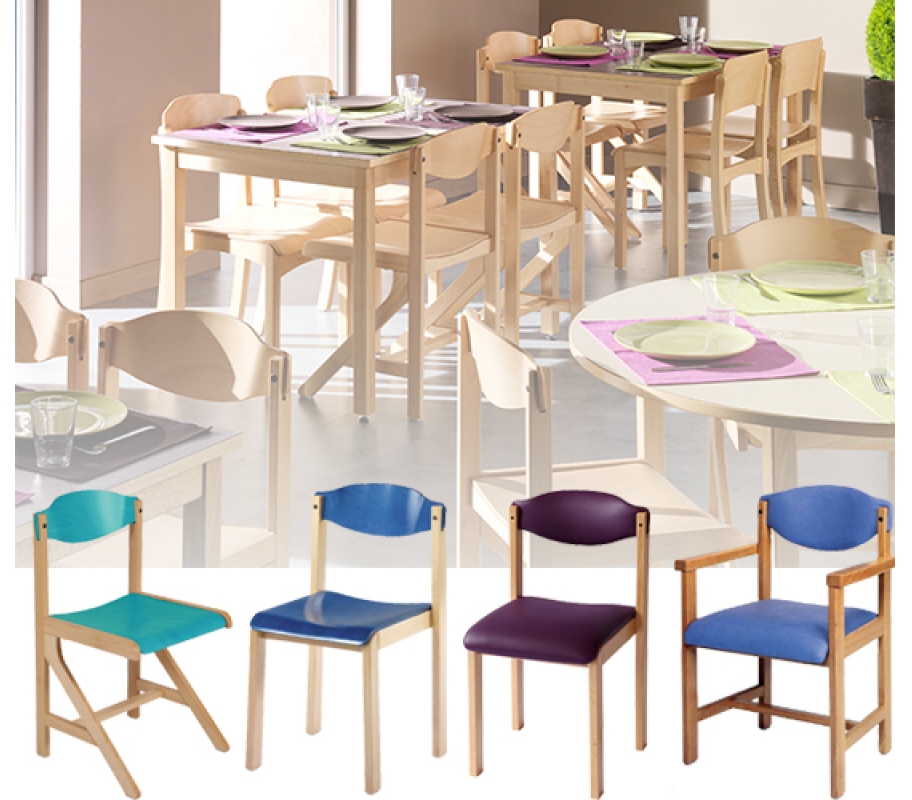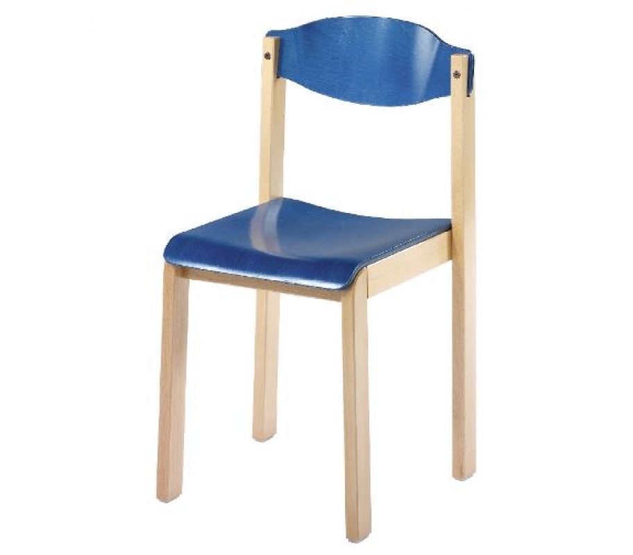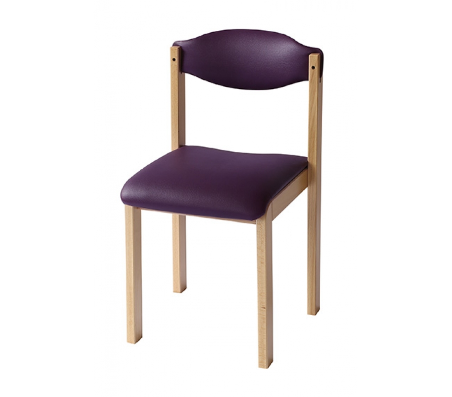 Dimensions hors tout : H 830 x L 610 x P 400 mm. Poids : 5 kg. Hauteur d’assise : T6, norme européenne NF EN 1729. Empilable. Structure réalisée en hêtre massif. Finition vernis polyuréthane. Assise et dossier en multiplis de hêtre d'épaisseur 10 mm rembourrés avec du textile enduit.