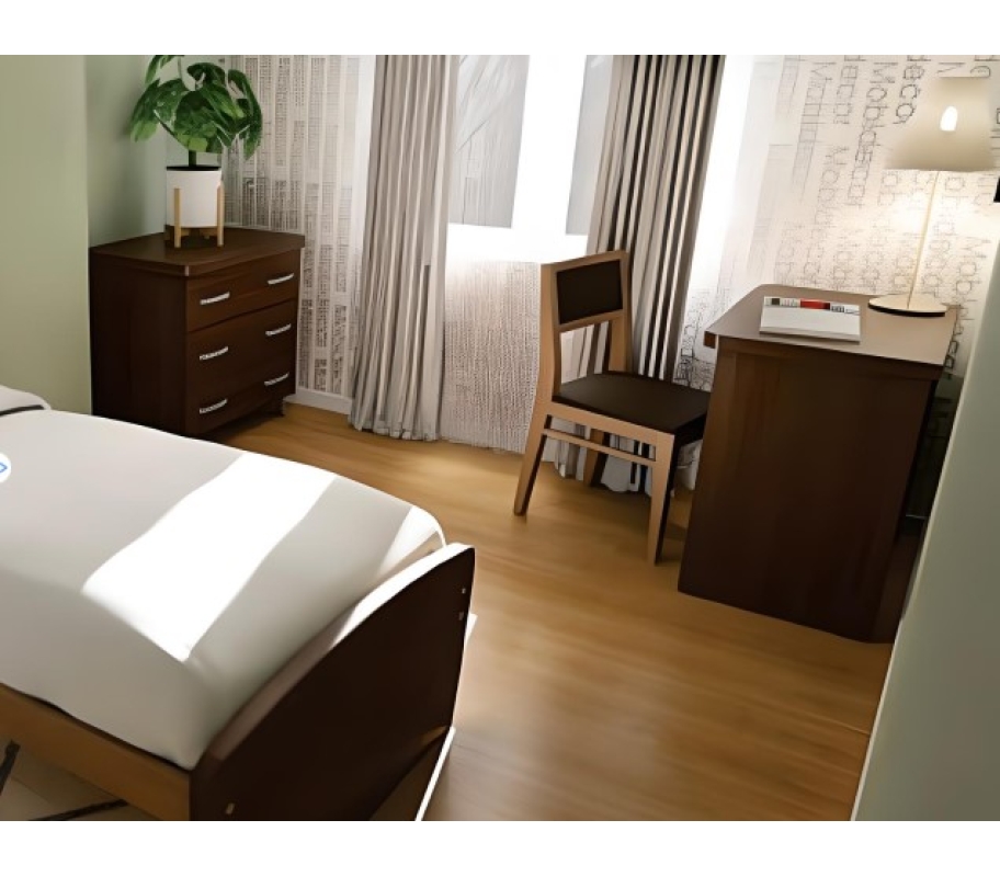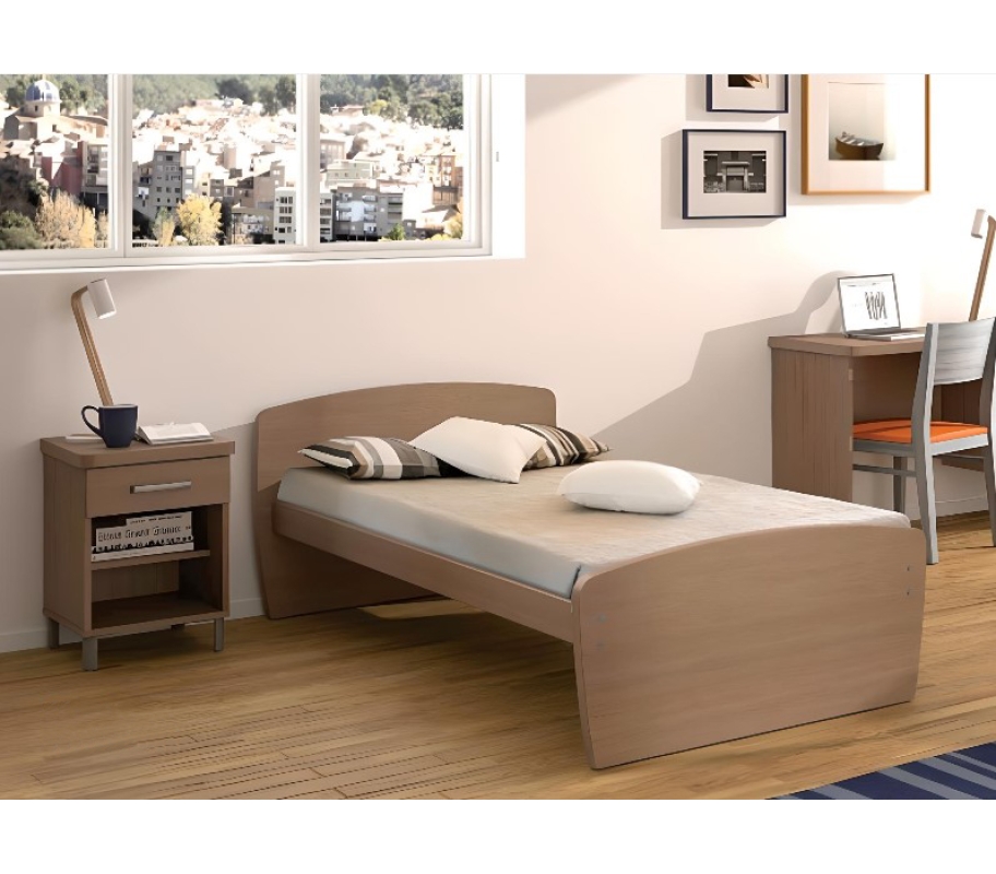 • Panneaux tête et pied de lit coins arrondis réalisés en stra fié ép.40 mm chant ABS sur pa ns