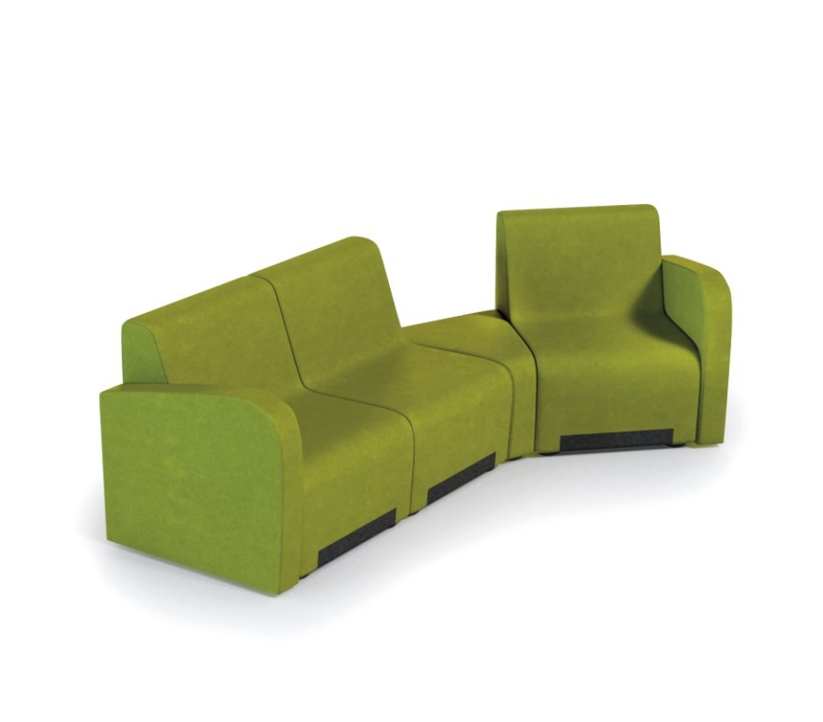Ruby est un système modulaire conçu pour fournir de nouveaux espaces de travail créatifs et interactifs, modulable à l’inni. Mousse polyuréthane injectée sur structure en bois très résistante. 4 patins en polypropylène noir, Ø80 x 20mm. Vissés par tige letée M8, compensateurs des inégalités du sol.