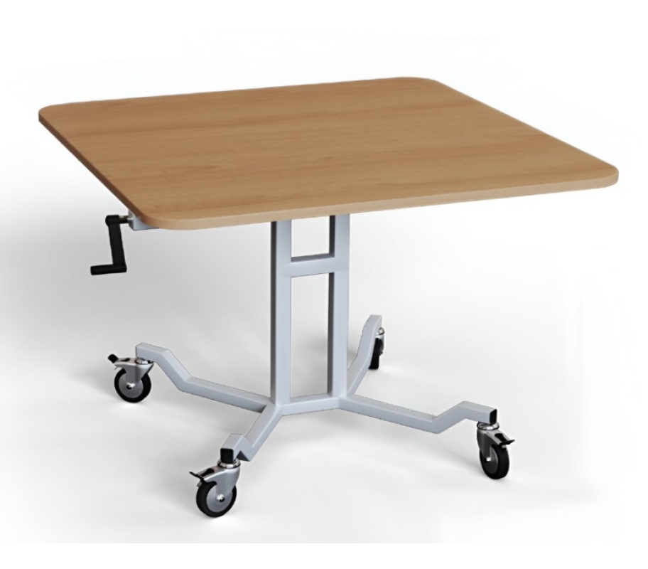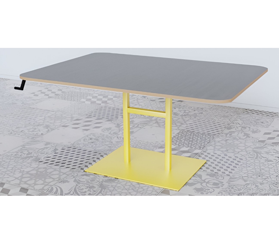 - Mécanisme de réglage : Système manuel avec une manivelle amovible discrète, permettant un réglage précis sans effort. La manivelle se fixe sous le plateau pour un rangement pratique.