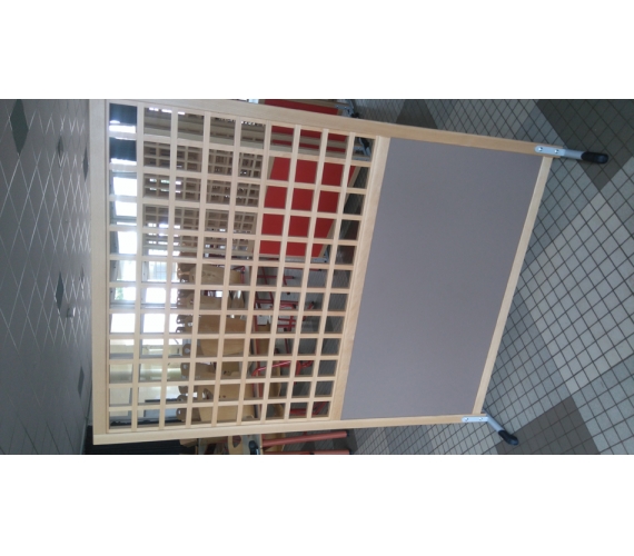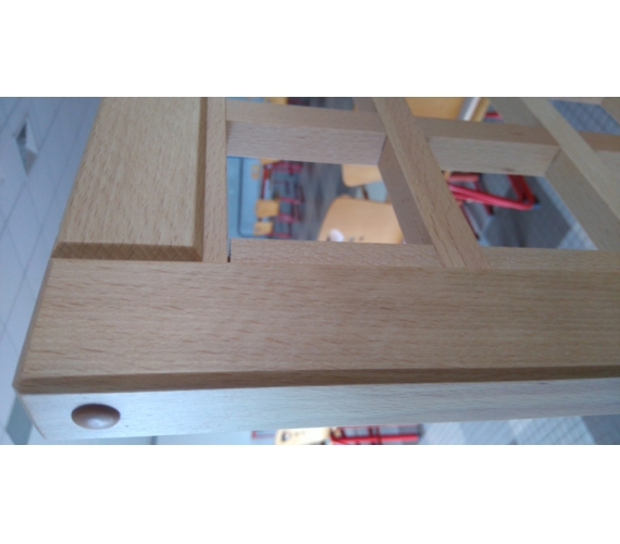 Partie supérieure croisillons en hêtre massif 10 x 10cm. Partie inférieure en panneau en mélaminé ép. : 19 mm.