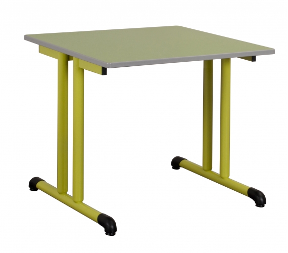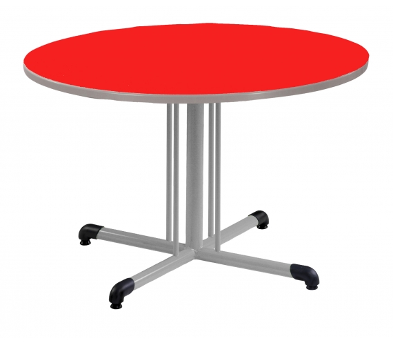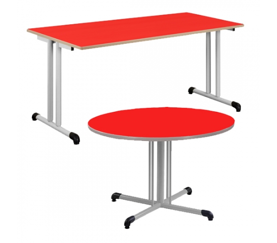 Piètement central avec semelle cintrée en tube Ø 45 ép.: 2 mm et montant Ø 60 ép. : 2 mm (table 80/80 et Ø 120); Piètement à dégagement latéral avec semelle cintrée en tube Ø 45 ép.: 2 mm et montant Ø 50 ép. : 2 mm, cadre soudé sous plateau en tube 50/20 ép.: 1,2 mm; revêtu époxy.