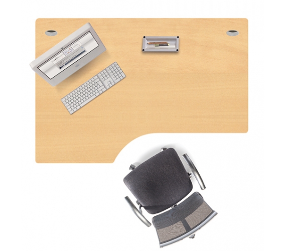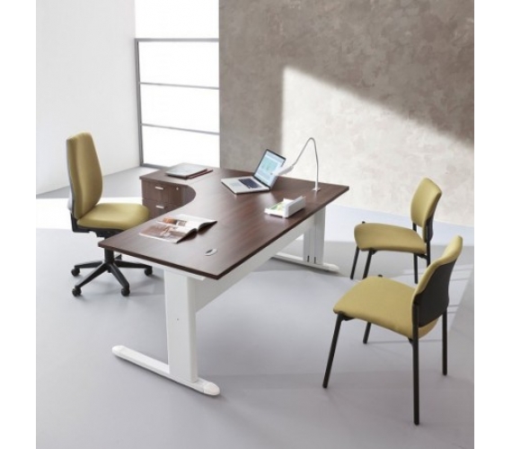 Bureau d'entreprise avec un petit retour à droite ou à gauche (voir schéma). Fonctionnels et modulaires, ils peuvent reçevoir un caisson ou un plan de profondeur 60 cm sur son retour ainsi que des plans de convivialité : demi-lune, demi-ovale ou extension. Existent en deux largeurs, 160 ou 180 cm