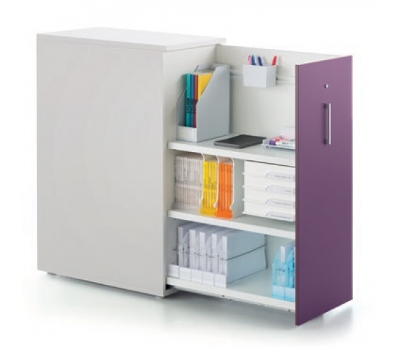 ■ Équipé de 2 tablettes métal pour dossiers suspendus et 1 socle mélaminé.