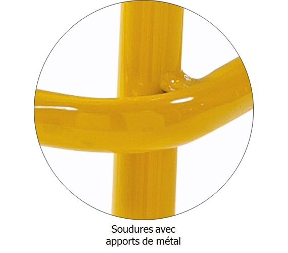 Piètement en tube de diamètre de 22 et d'une épaisseur de 1,5 mm; Accotoirs antichute revêtu époxy.
