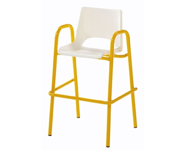Hauteur d’assise : H52; permettant d’asseoir des enfants de + de 4 ans à une table taille adulte, améliorant ainsi les postures au travail du personnel de service. Fauteuil scolaire empilable.