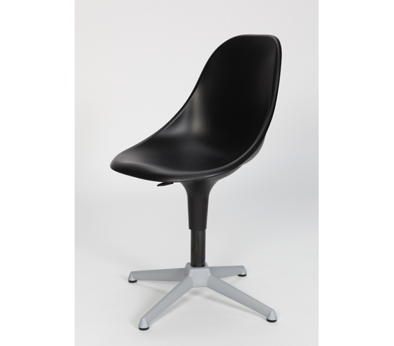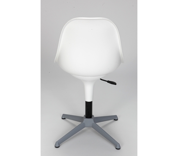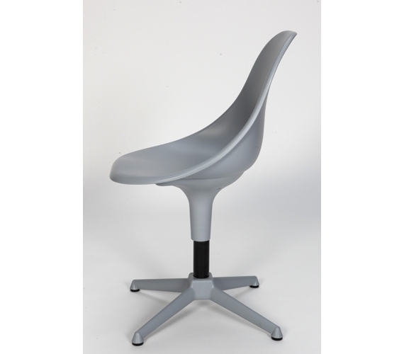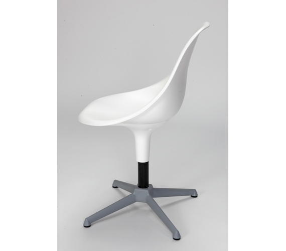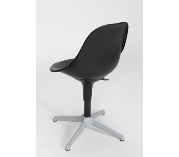 La rotativité est de 360°, le siège a un empattement au sol de 4 branches avec coussin en caoutchouc