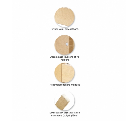 Sommier lattes 80 x 15 mm avec longerons 23 x 23 mm. finition verni polyuréthane.