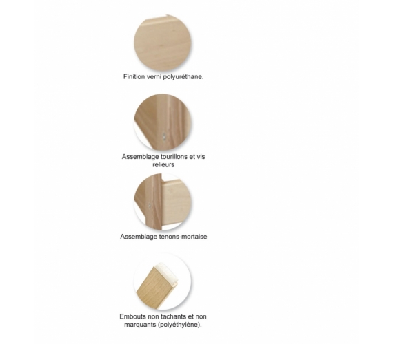 Sommier lattes 80 x 15 mm avec longerons 23 x 23 mm. finition verni polyuréthane.