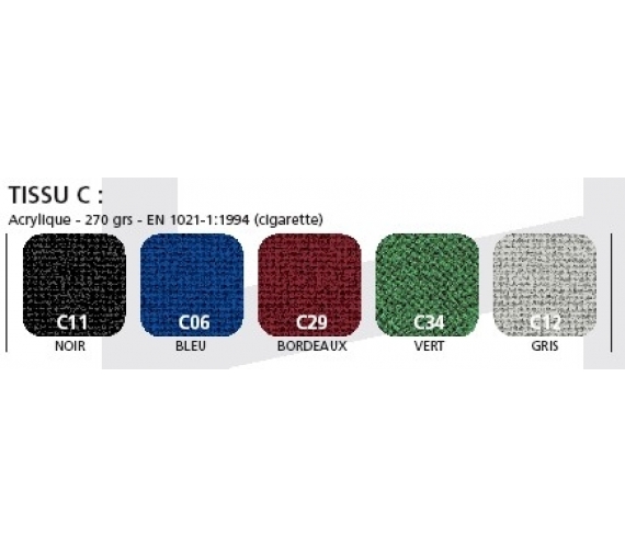 Assise et dossier tissu C (couleurs: noir, bleu, bordeaux, vert, gris):