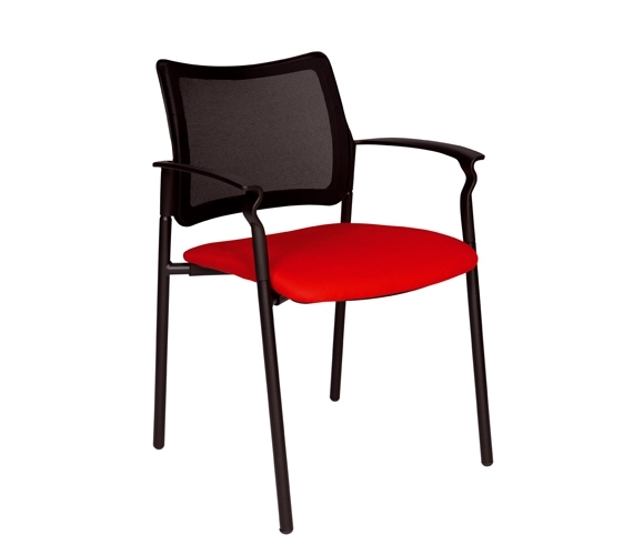Fauteuil empilable Structure acier époxy noir - assise garnie tissu K - dossier résille noir ou blanc