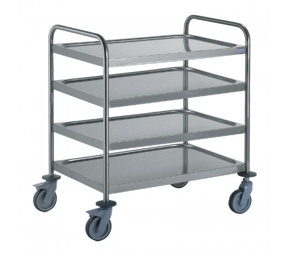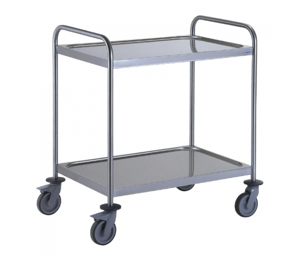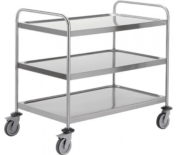 Construction soudée en acier inoxidable. Plateaux emboutis avec bords écrasés, insonorisés. Arceaux: tube de 25mm de diamètre. 4 roues pivotantes de 125mm de diamètre à chape polyamide dont 2 frein, avec pare chocs annulaires. Bandage caoutchouc non marquant. Charge maxi: 50kg par niveau. Certification NF-Hygiène Alimentaire.