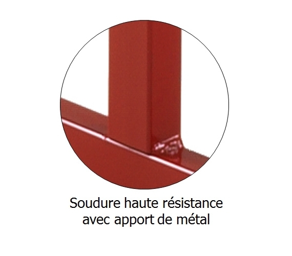 Piétement en tube 40/27 ép: 1.5 mm, poutre support plateau en tôle acier 12.5/10e, bras support plateau en tôle acier 40/10e; revêtu époxy.