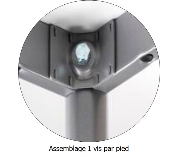 Piètement en tube de diamètre 50 mm d'épaisseur 1,2 mm; cadre soudé en tube 50/20 et d'une épaisseur de 1,2 mm; revêtu époxy.