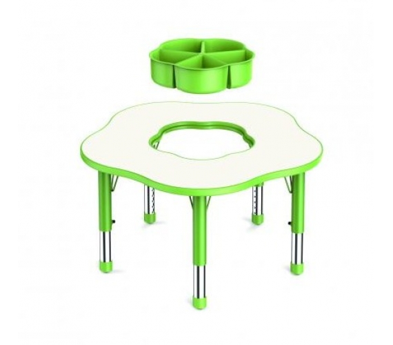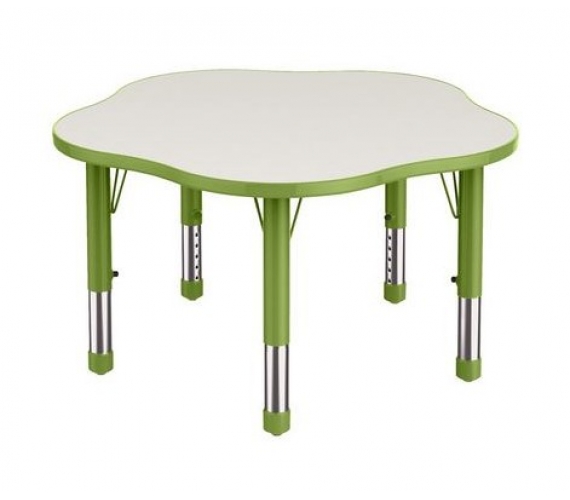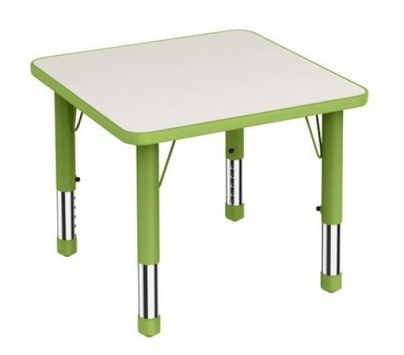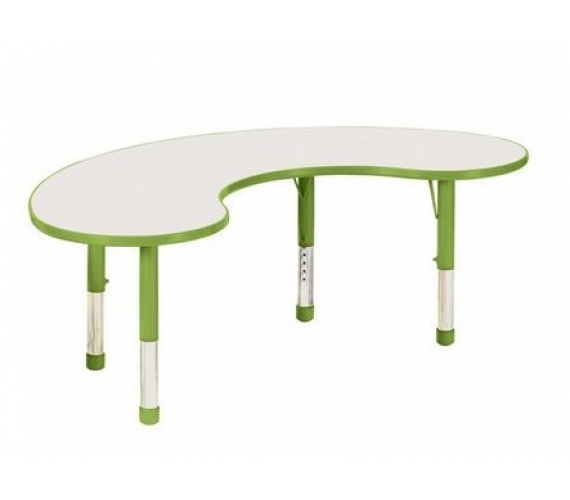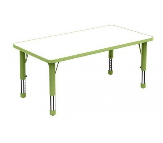 Piétement rond en métal réglable en hauteur de la taille 1 à 3. Couleur unique: vert anis (piétement et chant) et blanc pour le plateau