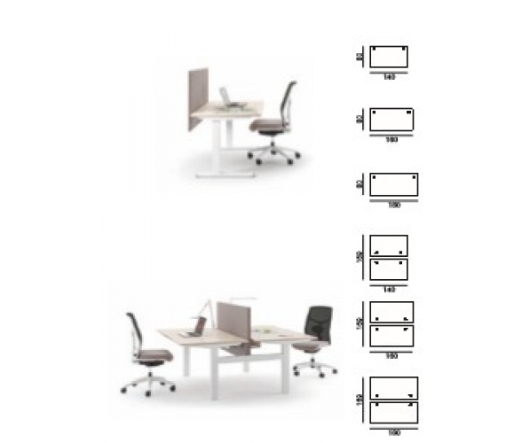 - individuelle : 2 piétements décentrés, colonne L 9 x P 6 cm. Embouts finition Gris.