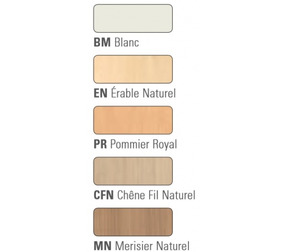 - Plateaux Stratifié épaisseur 25 mm, chants droits ABS plaqué 2 mm.