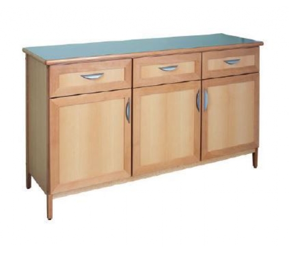 Dimensions hors tout : H 891 x P 545 x L 1677 mm. Structure réalisée en hêtre massif. Les tiroirs