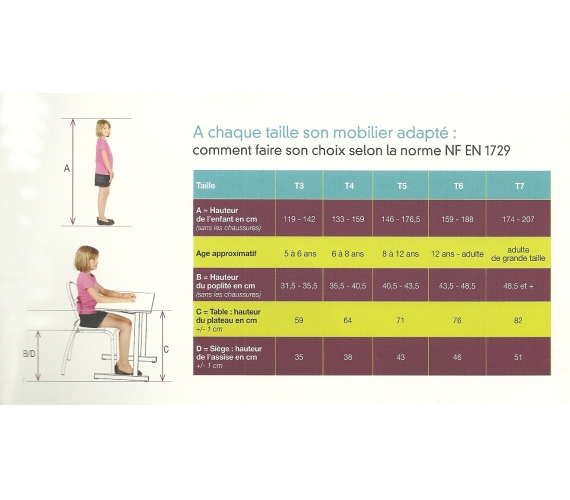 Chaise empilable uniquement valable en taille 6. Produit certifié NF éducation et Environnement.