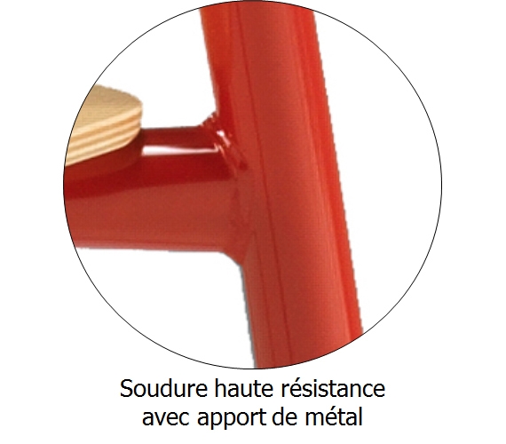 Piètement en tube d'un diamètre de 25 mm et d'une épaisseur de 1.2 mm, gousset de renfort aux soudures,revêtu  d'une peinture époxy (sans solvaent).