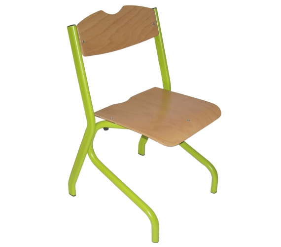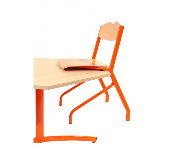 Chaise fixe, 4 pieds, empilable, appui sur table, avec une prise de main.