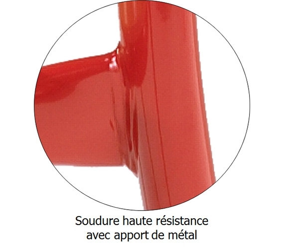 Piètement en tube d'un diamètre de 25 mm et d'une épaisseur de 1.2 mm, gousset de renfort aux soudures,revêtu  d'une peinture époxy (sans solvaent).