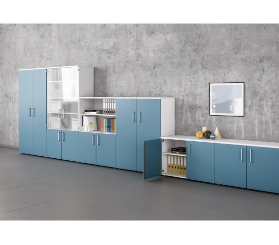 Corps des armoires en finition Argent, Blanc ou Anthracite.