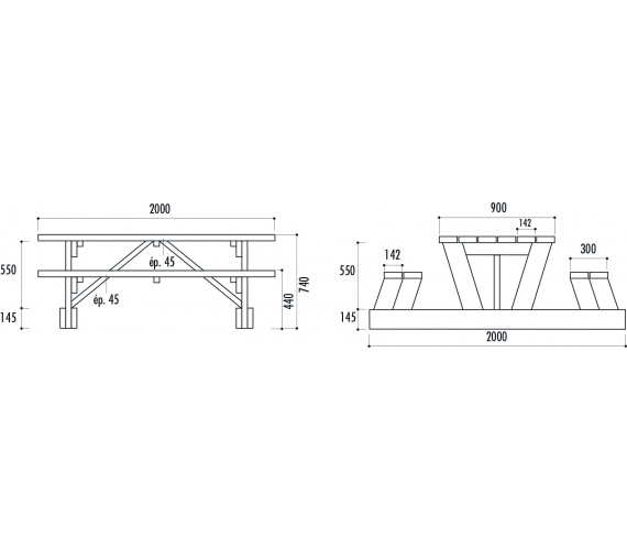Table de pique-nique 4 pieds à sceller ou à poser - HANOVRE