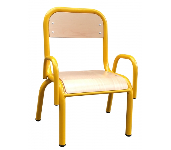 Assise d'une épaisseur de 8 mm et dossier appliqué d'une épaisseur de 7 mm en multiplis hêtre. L'assise et le dossier sont rivetés à la structure métallique, finition verni polyuréthane.