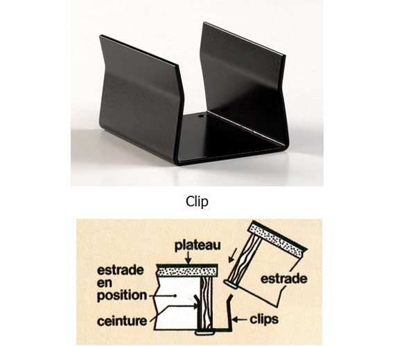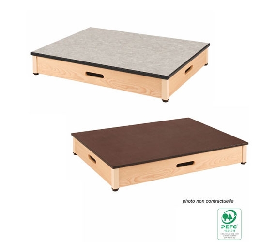 Hauteur d’utilisation : 175 mm. Estrade assemblable avec prise de main pour manutention sur les 4 côtés. Empilable. (Option: clips métalliques permettant l’assemblage des estrades).